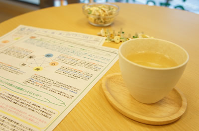 ハーブティーをご用意しております。おくつろぎいただきながら、施術内容や施術頻度などについてご説明致します。また、日常生活での注意点、養生法など患者様おひとりおひとりに合わせてアドバイスをさせていただきます。